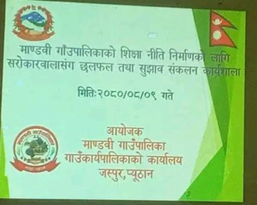 प्युठानको माण्डवी गाउँपालिकाले शिक्षा नीति निर्माणका लागि अन्तरक्रिया कार्यक्रम सम्पन्न गरेको छ।आज गाउँपालिकाको सभाहल देविस्थानमा सरोकारवाला सँग छ्लफल तथा सुझाव सङ्कलन गर्न अन्तरक्रिया कार्यक्रम गरिएको हो।